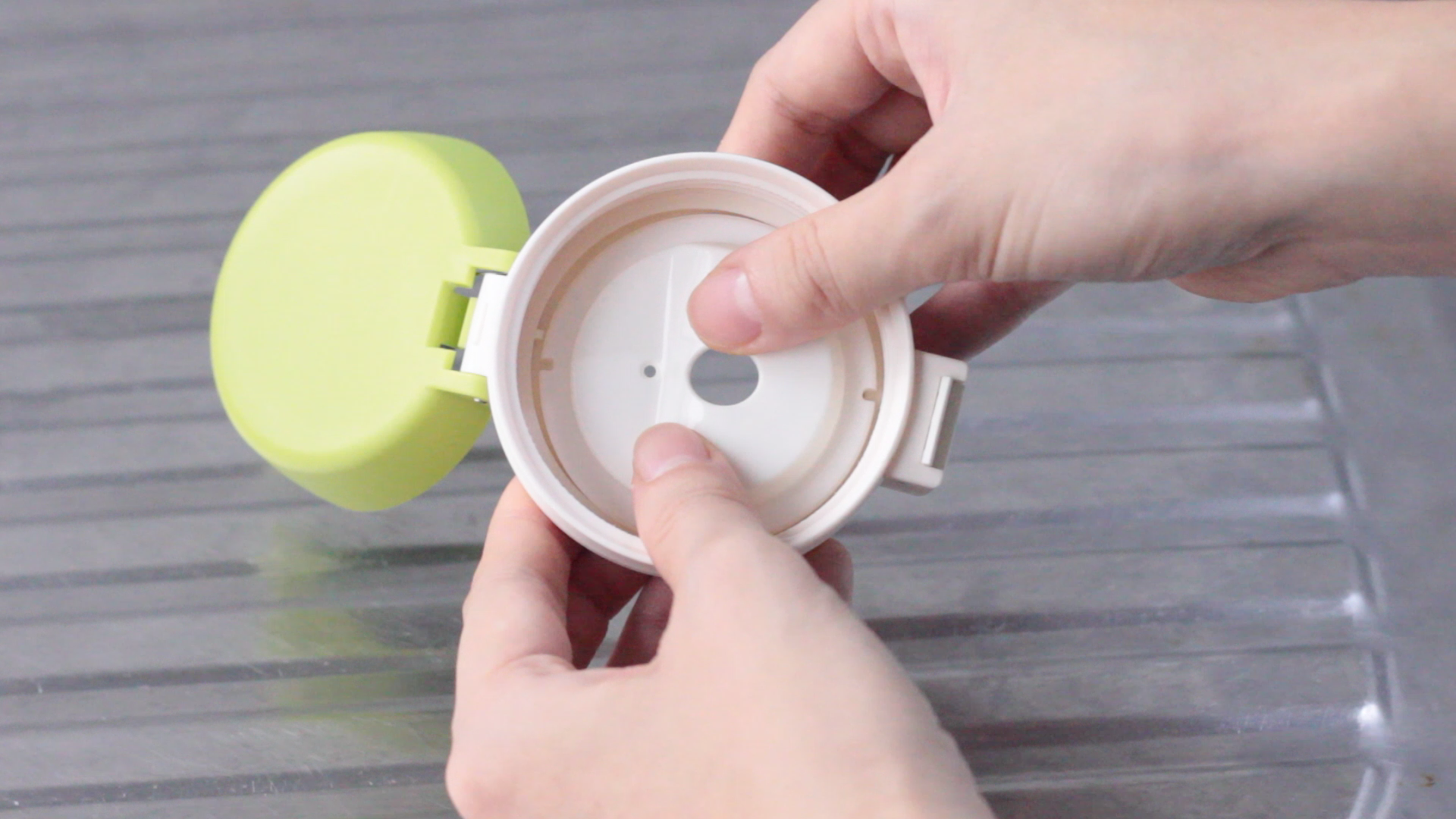 有一個彈蓋、pp材質杯口、一大一小的矽膠圈,只需輕壓即可拆下或組裝。