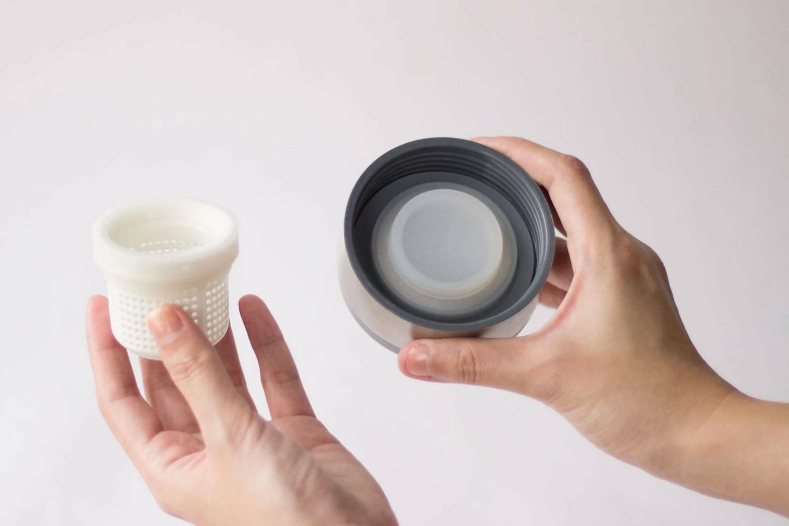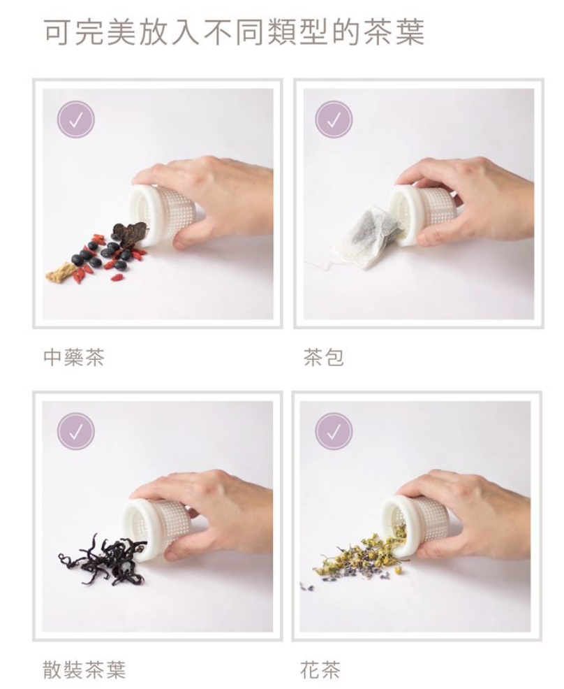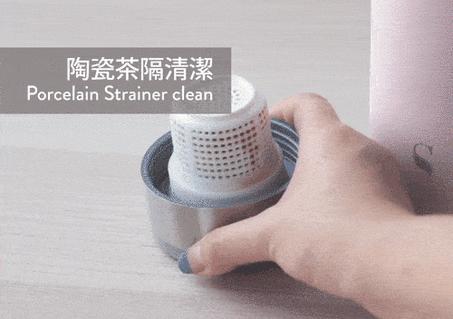 陶瓷茶隔和矽膠膠圈採取簡便設計,輕鬆清潔,不易留殘渣痕跡。 清洗時,只需將茶隔和膠圈拆卸下來,用流水沖洗即可。