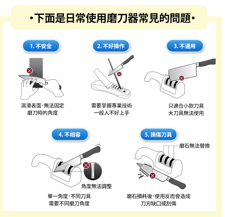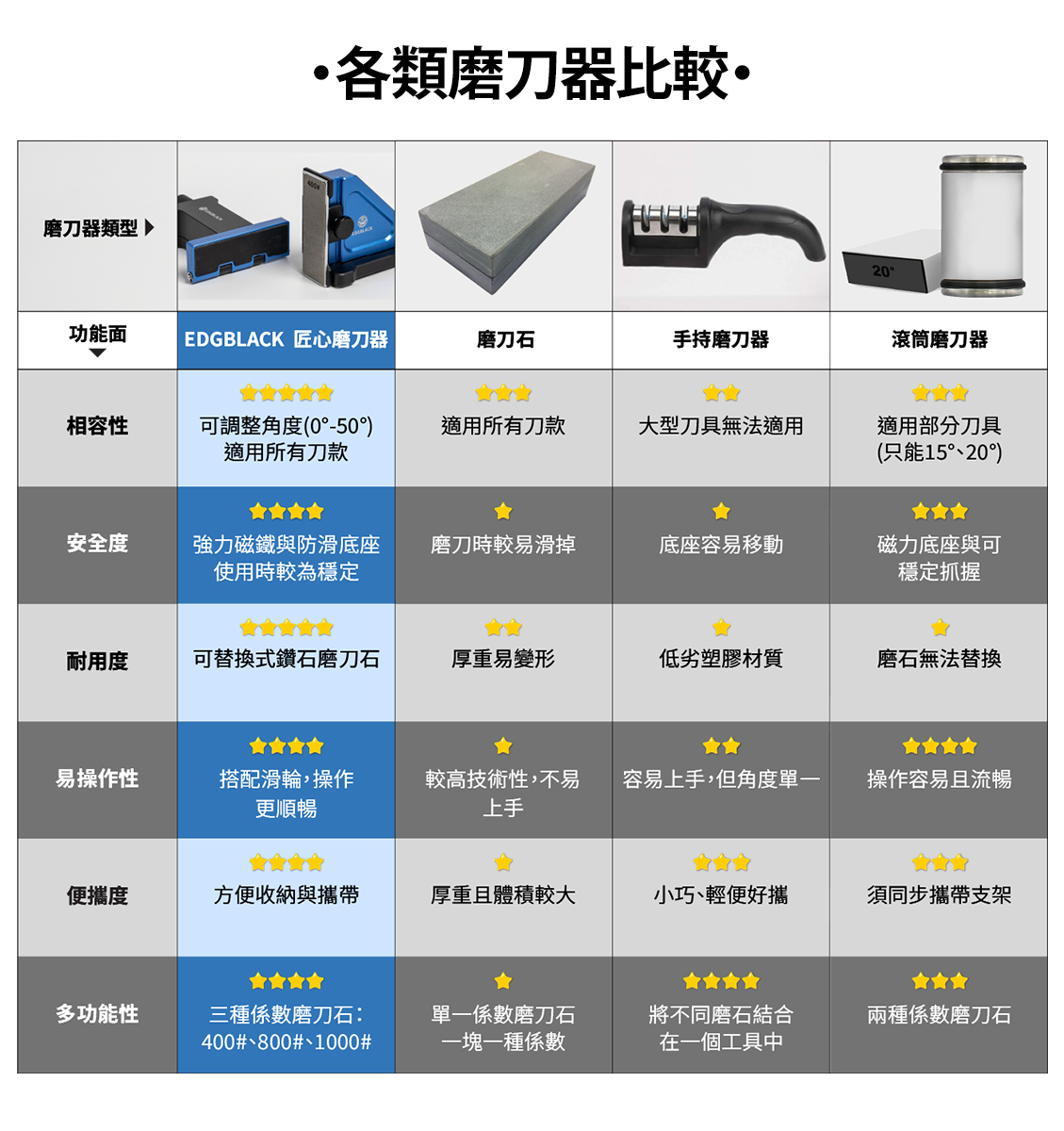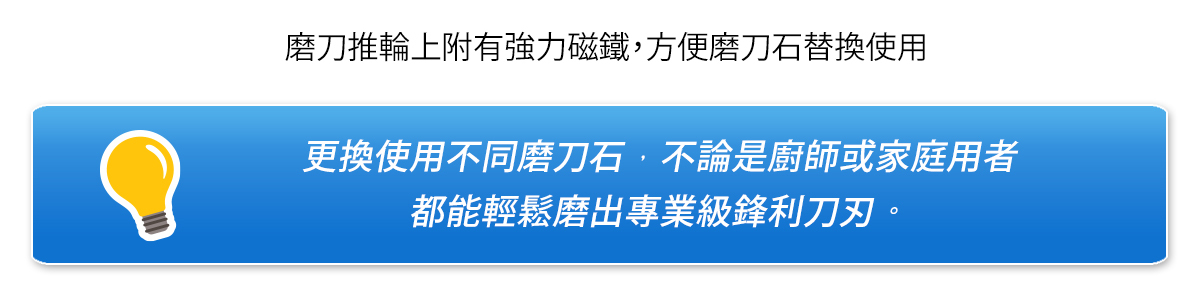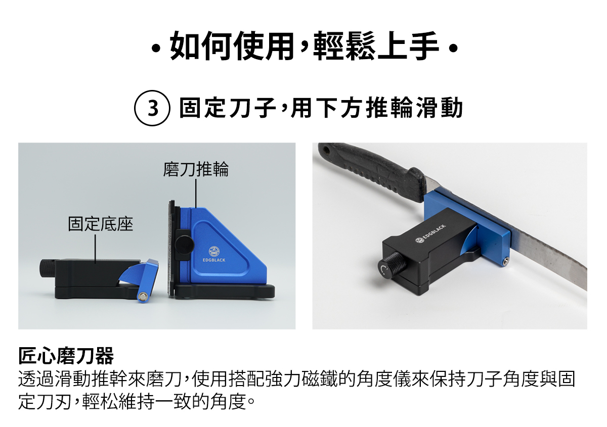 快速恢復鋒利刀刃,容易操作,可調設計與穩定防滑底座提供專業級精準操作,適用多種廚刀款式,小巧又便攜,不論在家或外出使用都方便。從此,可以更安全的把廚刀磨得更鋒利!