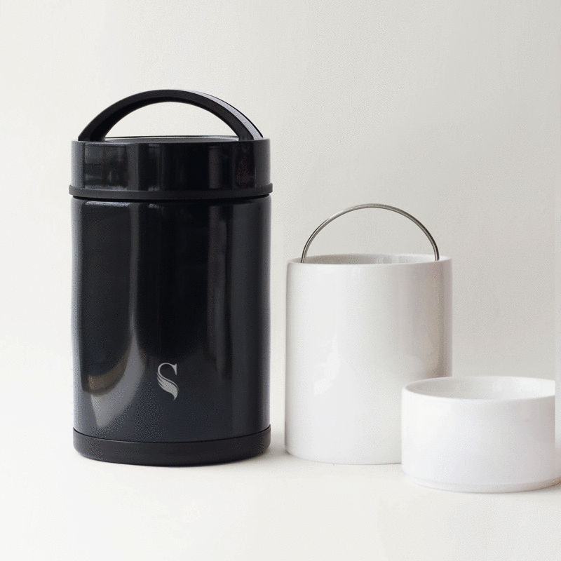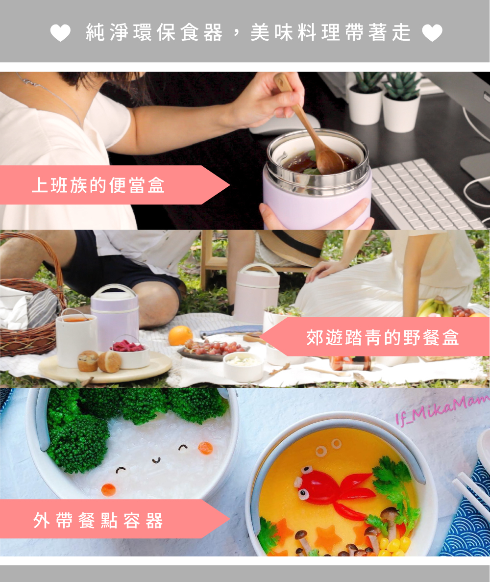 外部由雙層真空絕緣304不鏽鋼製成,搭配百搭食材的硬陶瓷碗,保持冷熱5-8小時。