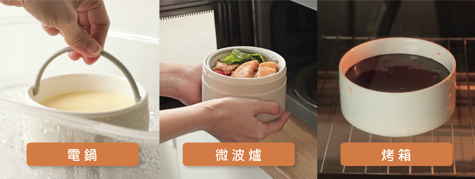 陶瓷內芯適用多種家電,可蒸可烤可微波,多種料理輕鬆做,食用時也不需更換容器,省下更多的作菜時間。