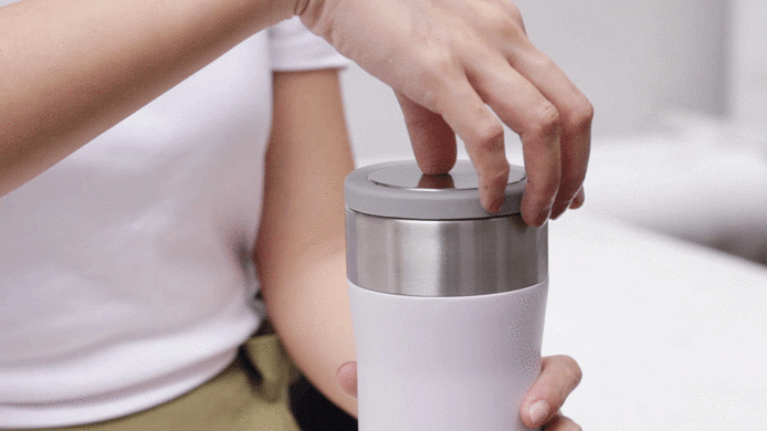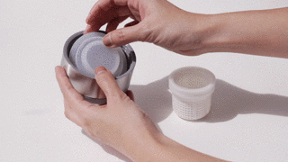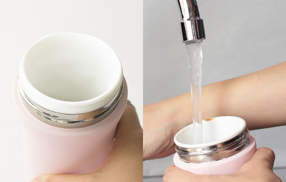 芯動杯的內芯是整塊陶瓷,經由 1400°C 燒製而成,較塗層、鍍層的保溫杯更安全無毒;氣孔細密,不卡殘渣好清潔,隨手沖洗,三秒就能清潔溜溜。