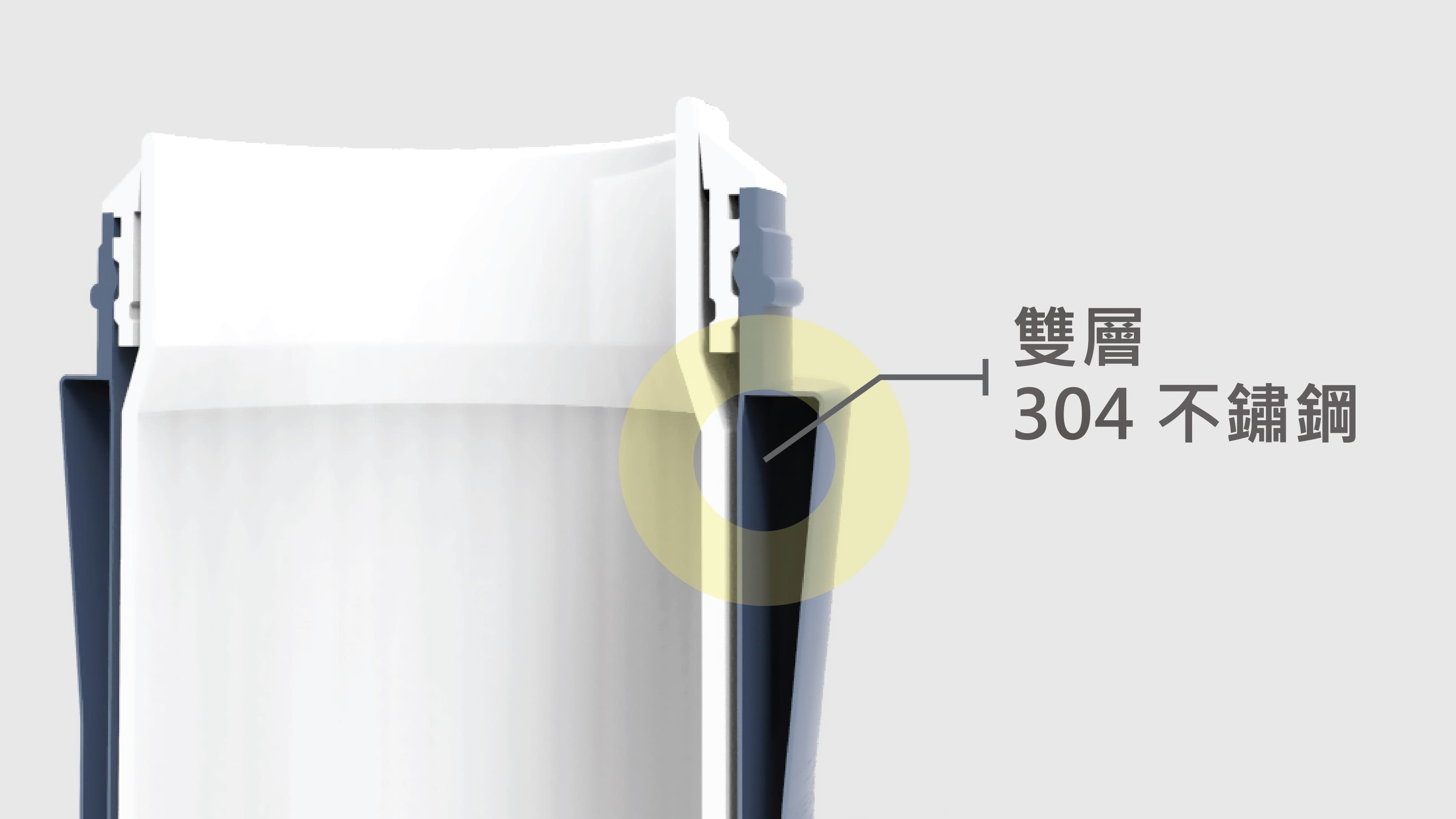 因技術限制,一般陶瓷與不鏽鋼的接縫約為 0.5mm,容易流入髒污;SWANZ 以獨步全球的接合技術,用無毒 PP 塑件將接縫縮小至 0.1mm,減少五倍空隙,讓髒污無法滲入。