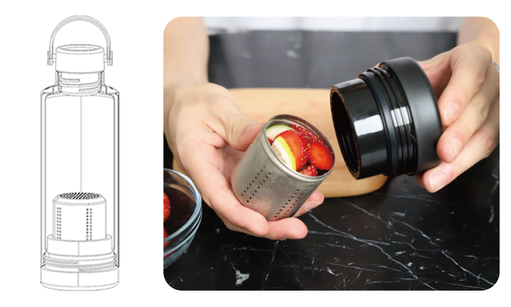 大容量的鈦芯濾網,茶葉、水果或中藥輕鬆放,簡單泡