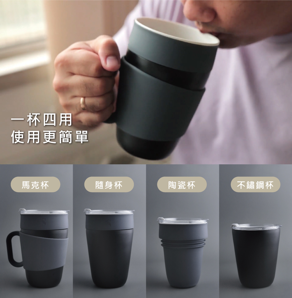 結合陶瓷杯與不鏽鋼杯雙材質的創新環保杯款,可一次擁有兩個杯子,滿足您陶瓷馬克杯與不鏽鋼保溫杯都想用的願望。