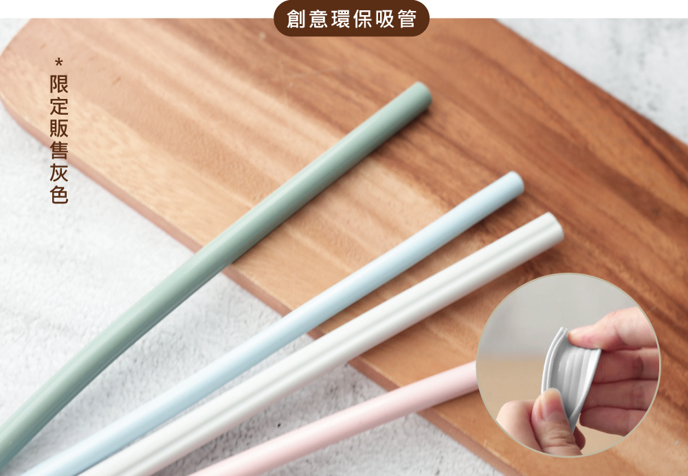 使用食品級矽膠製成,三段式結構,好清洗;含蓋粗吸管,防塵且適用喝珍奶。