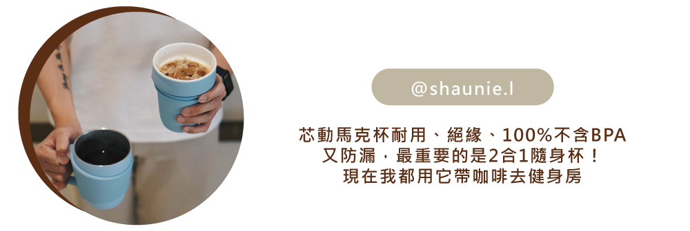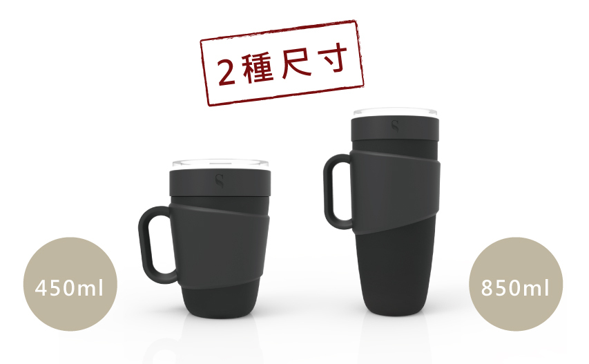 450ml 超商中杯飲料或早餐點飲料剛剛好;850ml 超商特大杯與手搖飲也能輕鬆裝入,一天的飲品就靠芯動馬克杯。