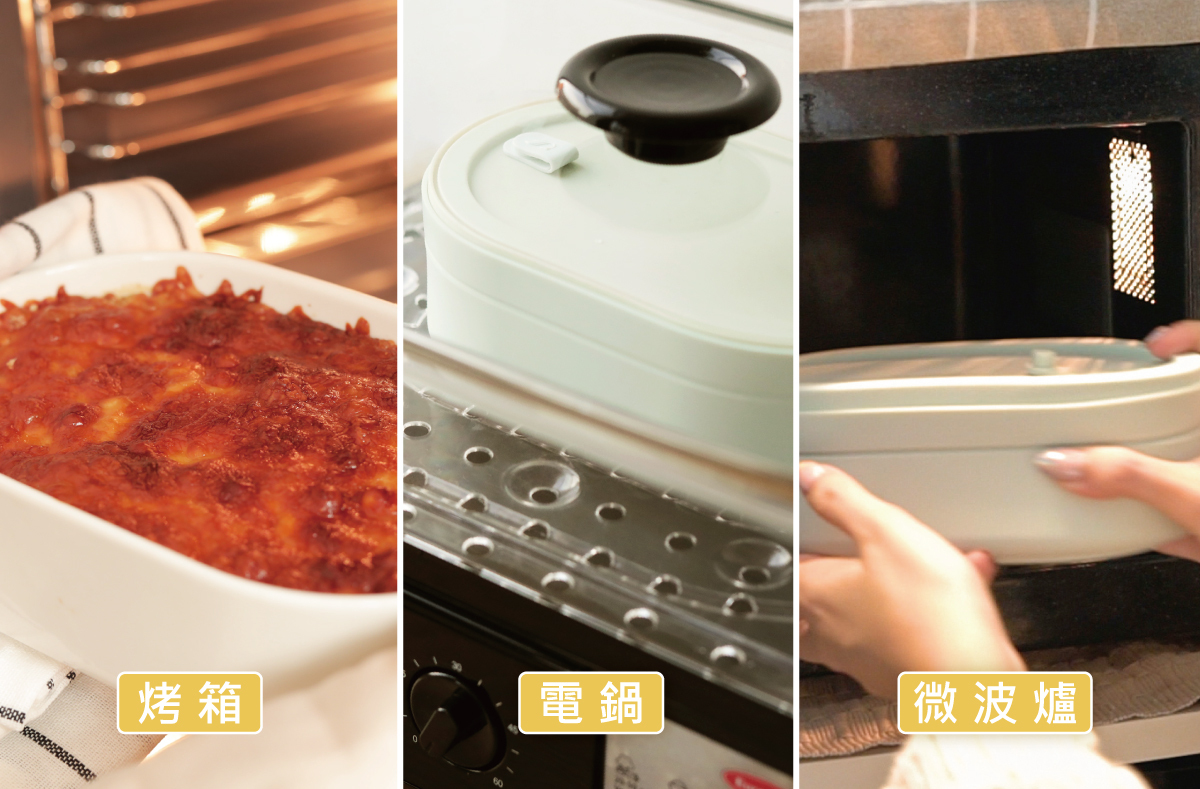 適用多種電器,方便加熱,變身料理器具,不用再額外裝盤,減少換餐具的清洗時間。