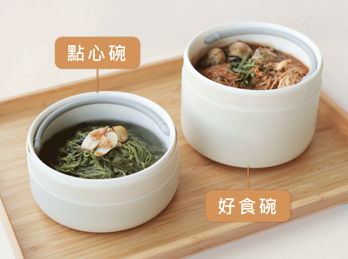 好食碗550ml,盛裝一份麵線羹、湯麵或滷肉飯剛剛好;300ml點心碗可盛裝多樣點心、甜湯或小菜,當成小飯碗也很適合。