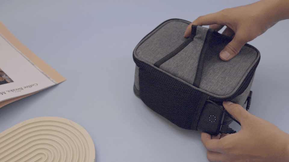 只需使用行動電源的行動保溫包,可加熱包內溫度至50℃,保持溫度,不用排隊等微波,也能吃到暖呼呼的便當