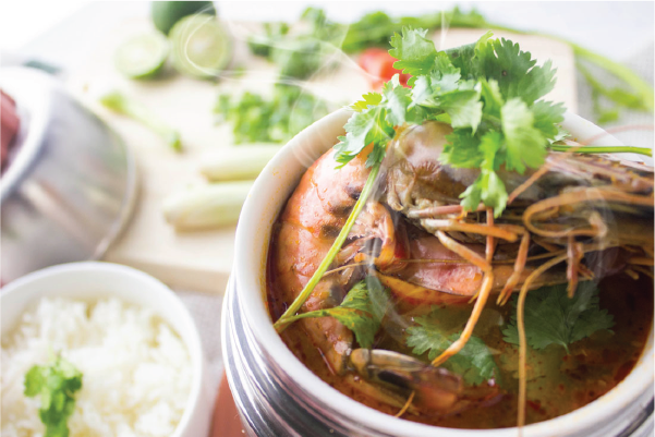 冬陰功湯,是泰國菜裡的最經典必吃的一道料理。它以其獨特的酸辣味以及香料味而聞名,十分美味可口。 冬陰功湯有很高的營養價值,其含有豐富的蛋白質、維生素A和錳,也是酸、銅和硒的良好來源,對身體非常有助益。 在寒冷的下雨天享受它,照亮您的一整天!