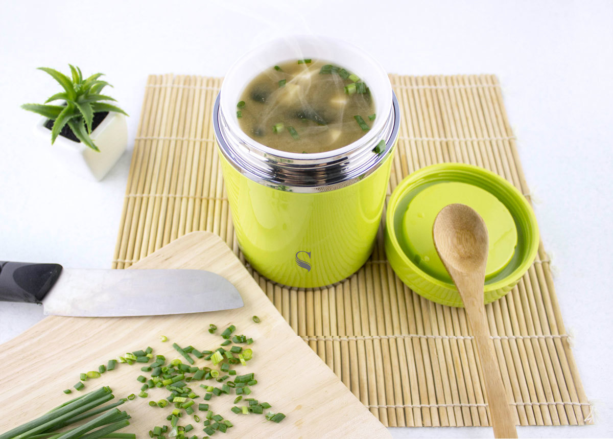 3. 將味噌、豆腐塊和日本昆布放入Swanz的陶瓷食物保溫罐中。