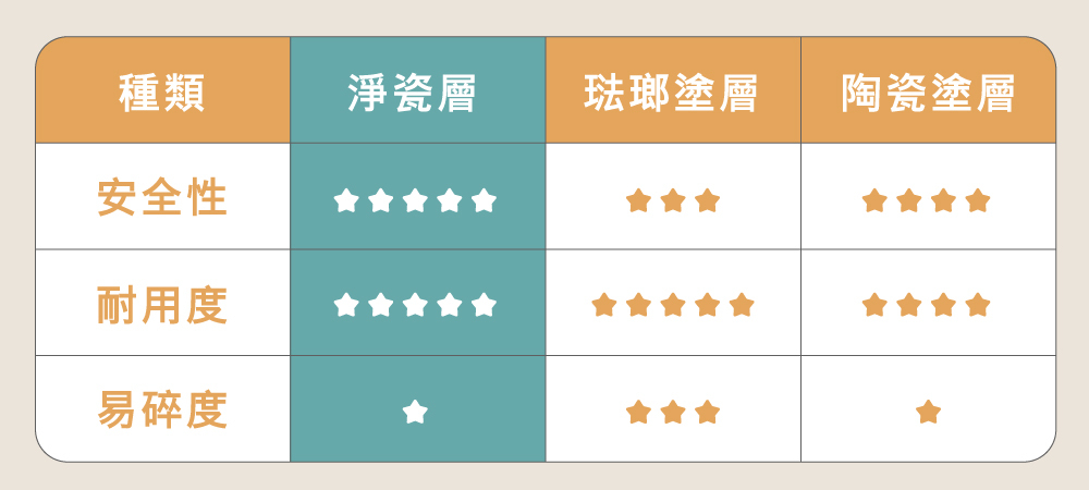 歷時三年開發的淨瓷塗層,可耐酸鹼、耐用度高,不易脫落,什麼飲品都能安心裝。