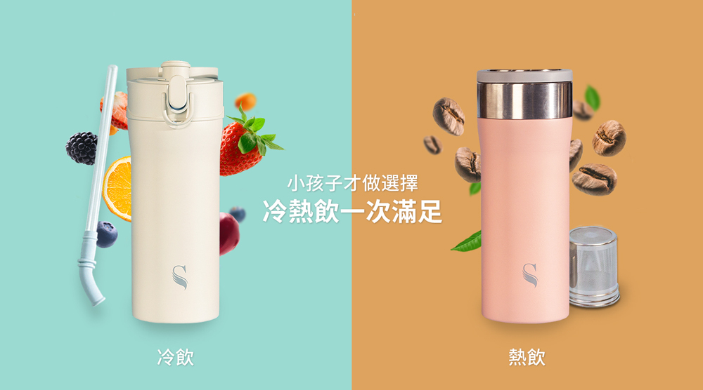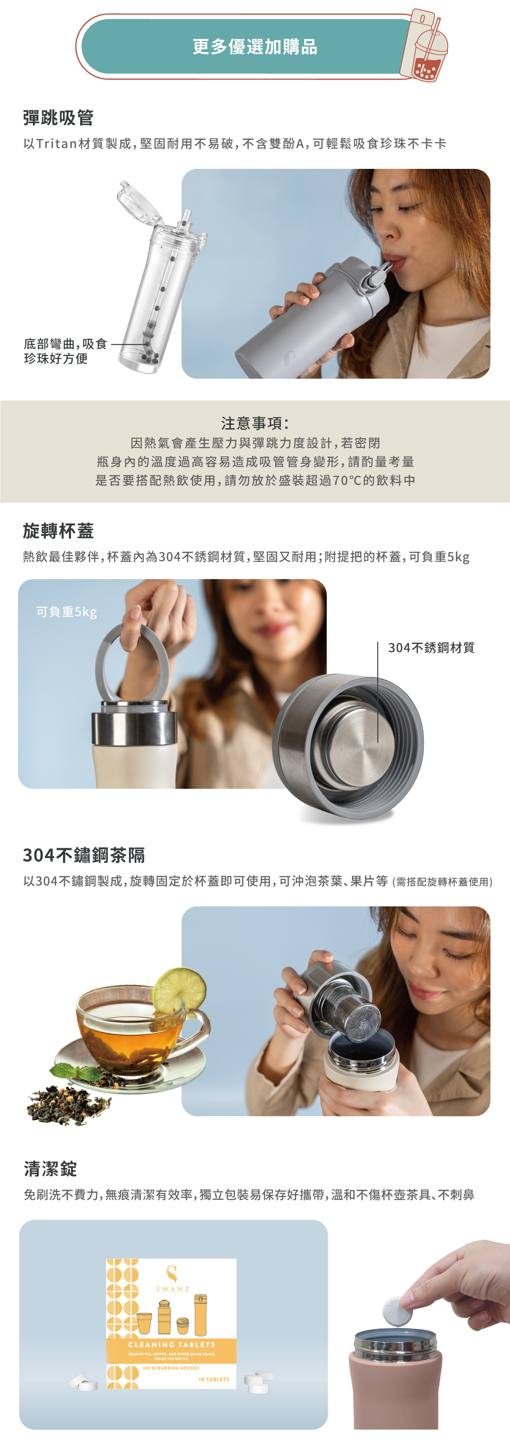 不同杯蓋(額外加購)適用不同飲用習慣,冷熱飲分開用,一杯雙享受。