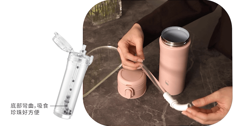 開蓋彈出,蓋上收納,可以吸食珍珠、椰果等,乾淨又衛生。