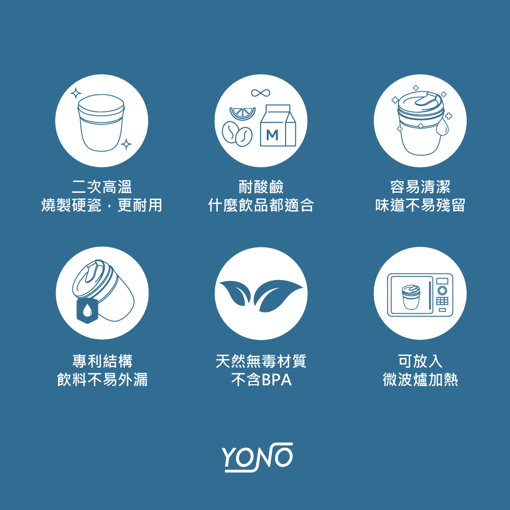 專利結構設計,日本匠心製作100%真瓷搭配食品級矽膠杯套與杯蓋。 真瓷杯安全無味,什麼飲品都能裝,不易卡色卡味。完整包覆杯子的矽膠套,讓純白陶瓷有了不一樣的風貌,變得繽紛又可愛,還能微隔熱與防碰撞,手拿更方便。