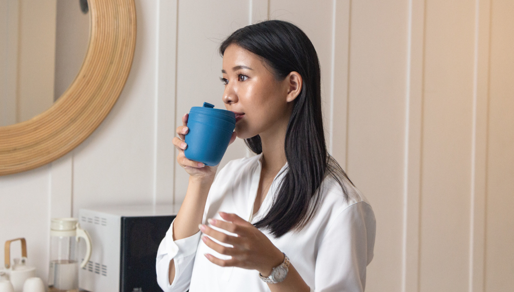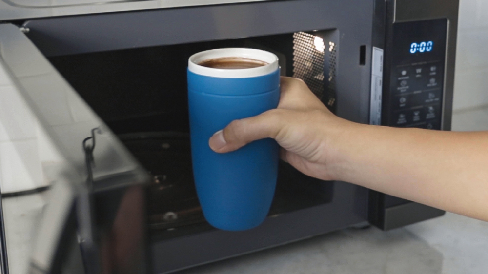 可連同矽膠杯套依同放入微波爐中微波加熱,隨時輕鬆喝熱飲。